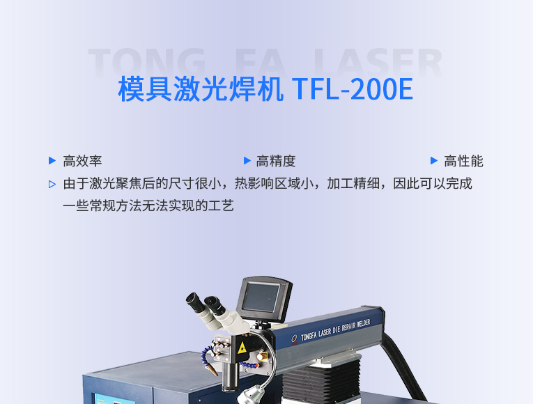 出口型模具激光焊機是通發(fā)激光公司專門為出口國外客戶使用而設(shè)計的系列機型TFL-200E,適用于各類精密注塑模具、壓鑄模具等模具激光修補焊接;同時也適合鑄件沙孔激光修補、模具崩缺激光修復(fù)、過切加工等的激光修補;各類金屬結(jié)構(gòu)件、金銀首飾的激光焊接加工。