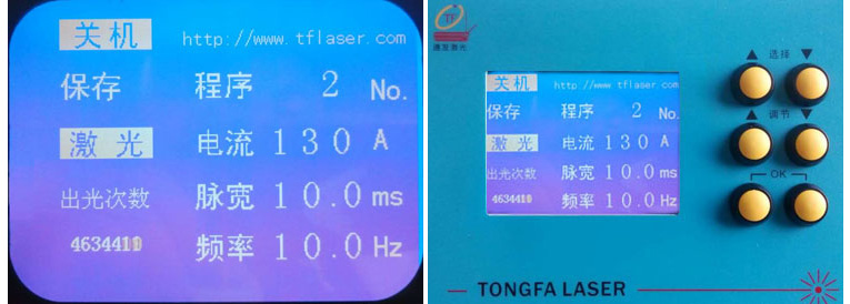 2、本首飾激光點焊機軟件可選擇中文或者英文界面,對不同加工位置選擇相應的激光焊接加工參數(shù)。由選擇按鈕移動光標到相應的參數(shù)位置,由調(diào)節(jié)按鈕調(diào)節(jié)參數(shù)的大小;