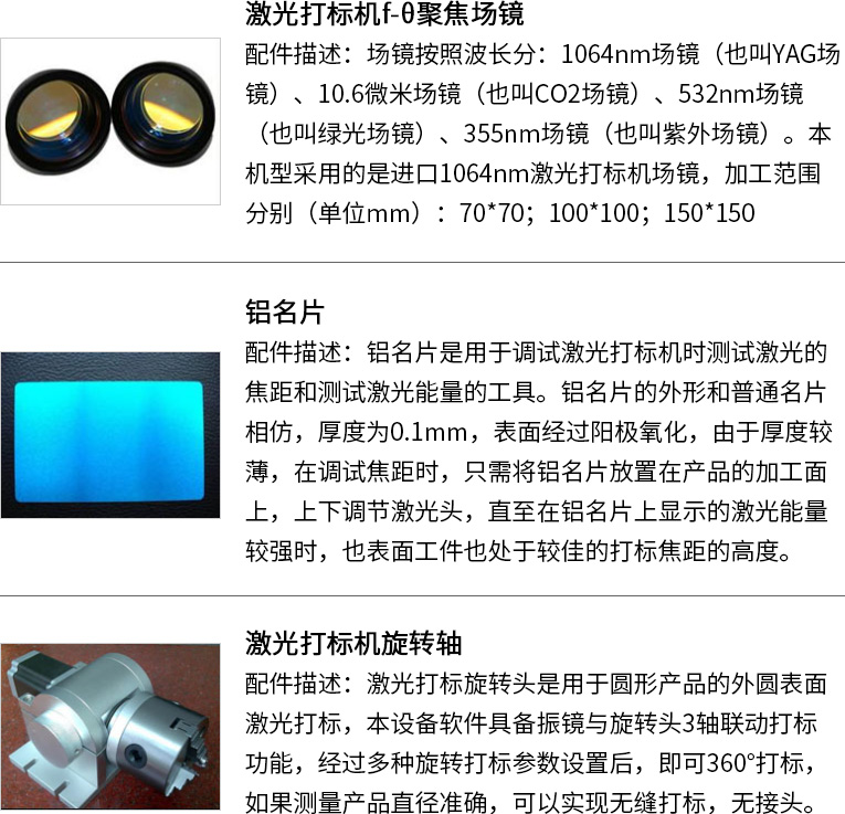 1、本激光打標機擁有優秀的光束質量:與傳統的固體激光打標機相比,其基模輸出,聚焦光斑直徑不到20um。發散角僅為半導體泵浦激光器的1/4。特別適用于精密、精細激光打標。