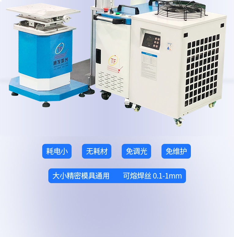 1、采用光纖激光器,反射率高,能量強(qiáng),免維護(hù),免調(diào)光,功耗少,相比傳統(tǒng) 模具焊來說,體積小,安全,穩(wěn)定性好超長使用壽命。